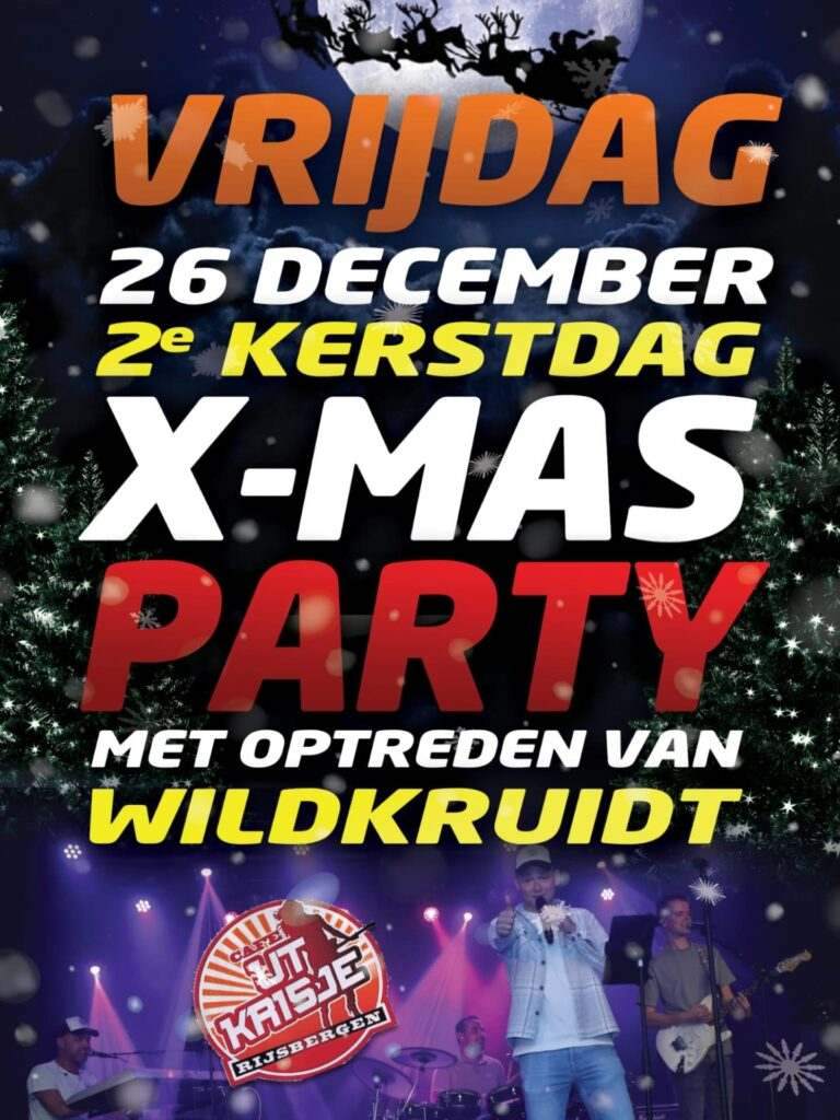 Jaaa het is weer bijna zover…Kerst in Ut Krisje, die ene week waar we eigenlijk het hele jaar al naar uitkijken, gezellig eten met de familie en erna heel snel door naar Ut Krisje om de dag feestelijk af te sluiten samen met de RIJSBERGSE BAND WILDKRUIDT op 2e Kerstdag..!!