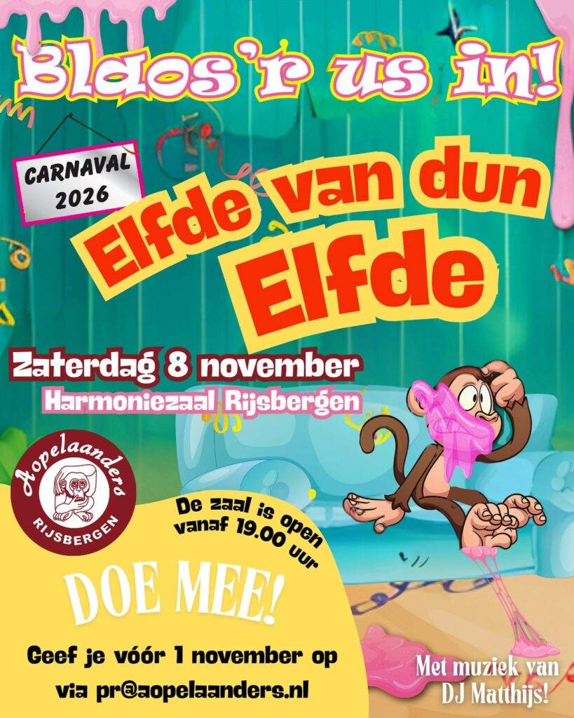 Op zaterdag 8 november luiden we het nieuwe carnavalsseizoen in met het traditionele liedjesfestijn tijdens Elfde van dun Elfde! Onder het motto “Blaos’r us in” maken we er samen een knallende start van