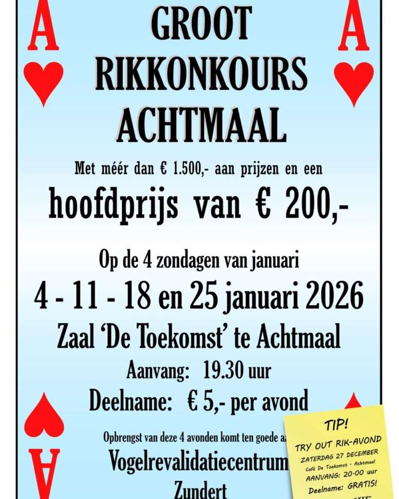Het loopt inmiddels tegen de jaarwisseling en dat betekent dat het jaarlijkse Groot Rikkonkours in Achtmaal, zoals gebruikelijk op de 4 zondagen van januari, weer in aantocht is.